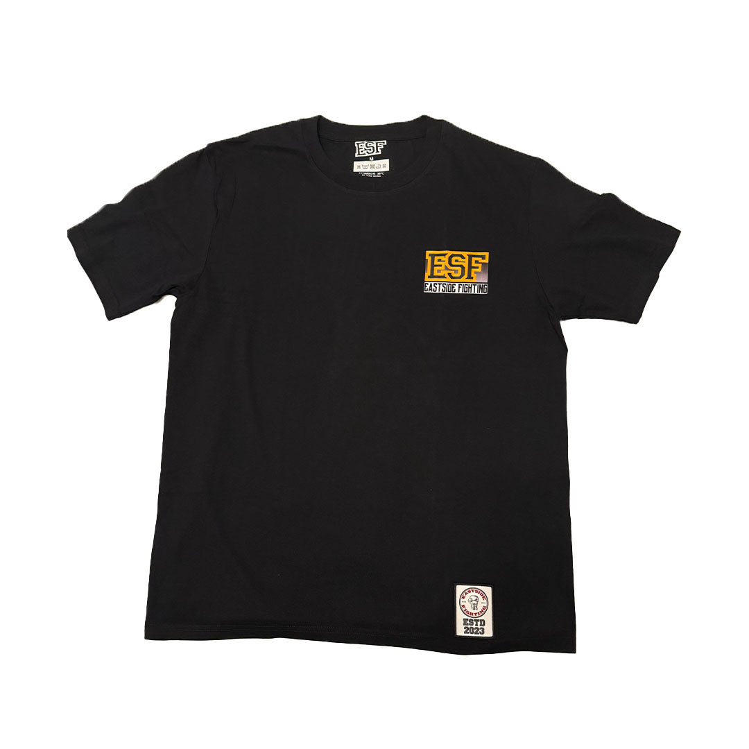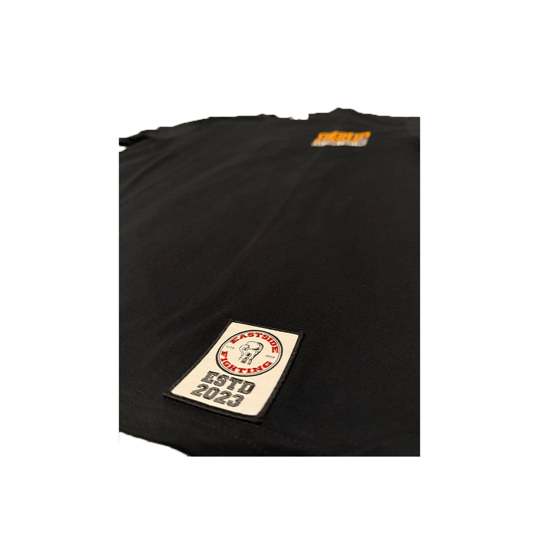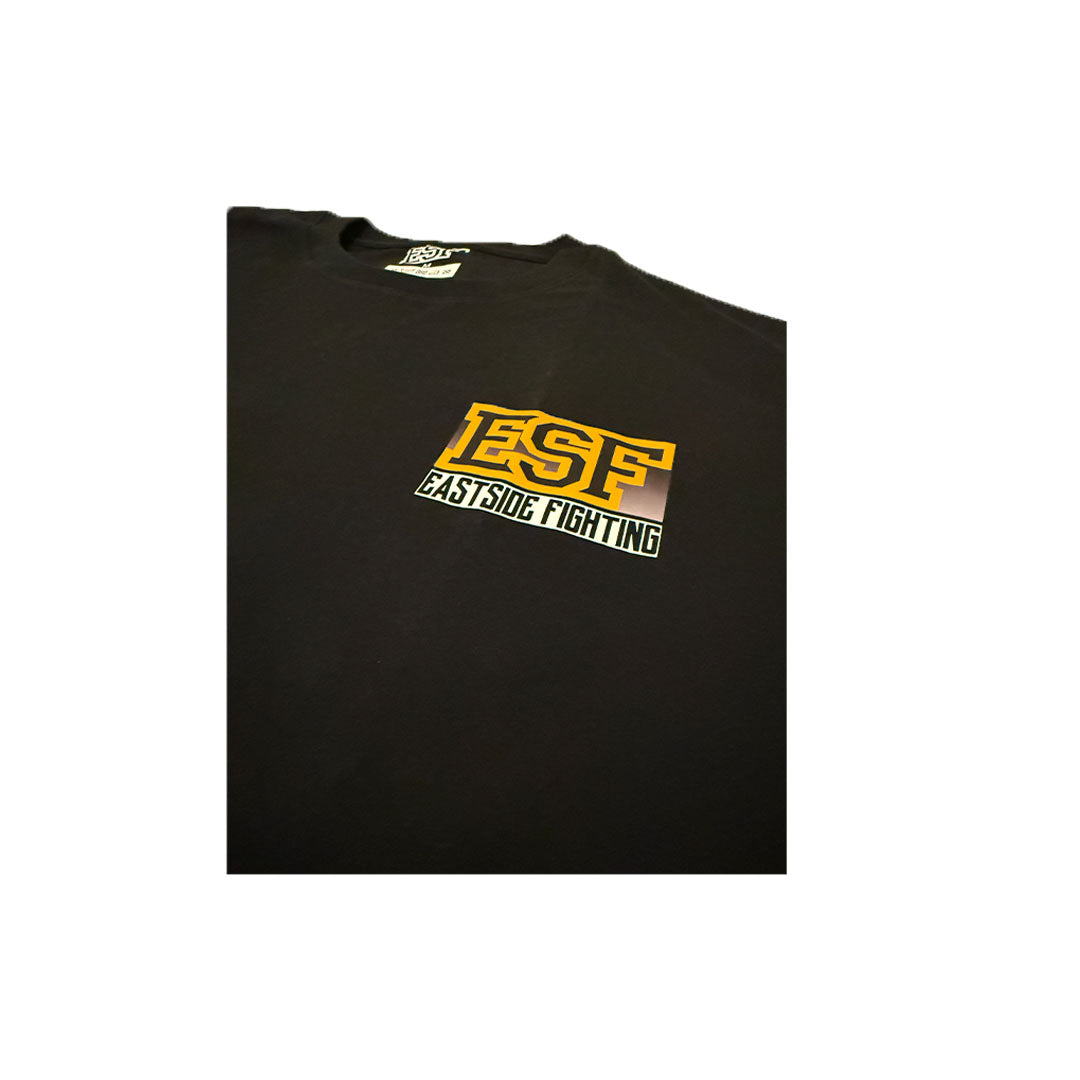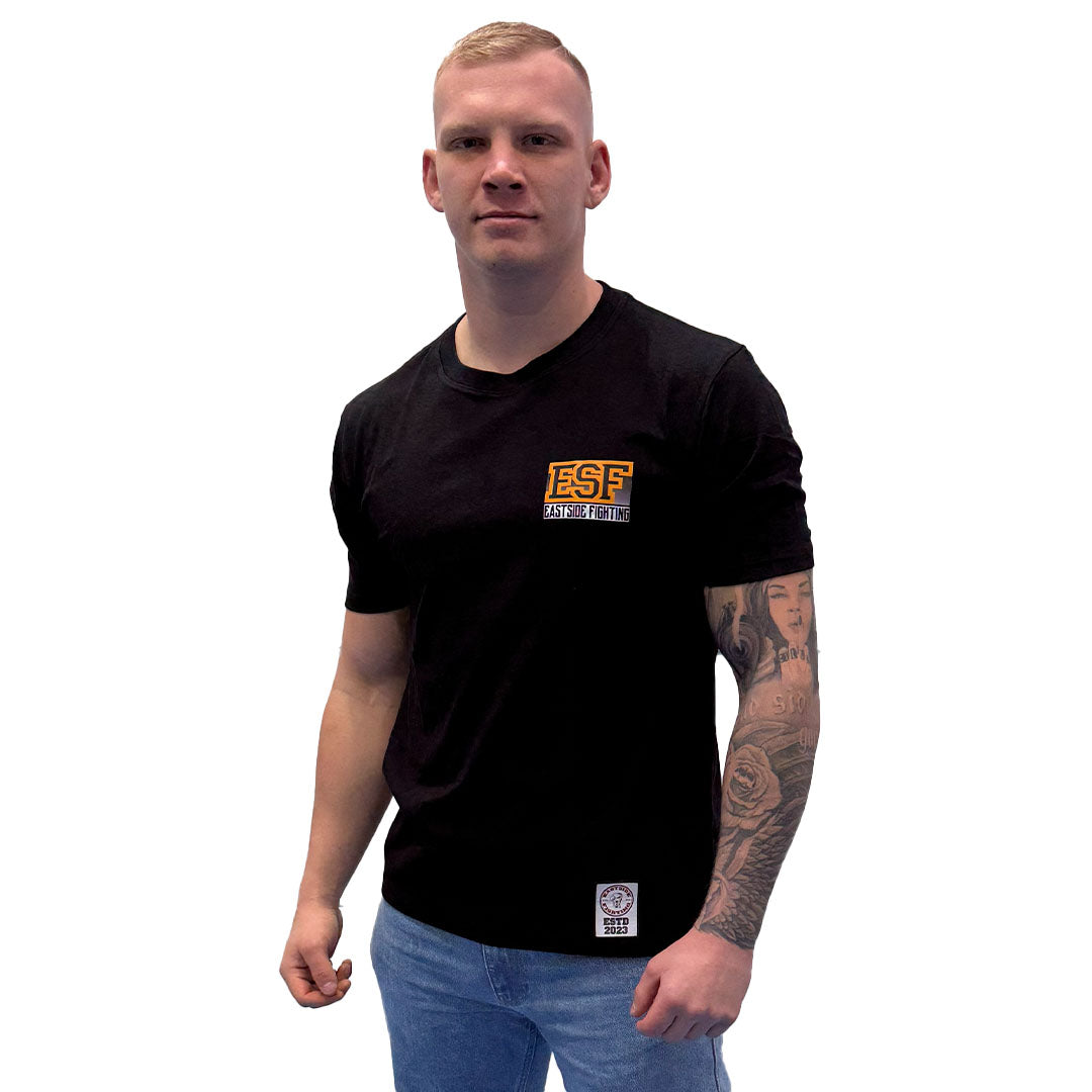 Schwarzes Shirt mit ESF und Eastside Fighting Druck auf der linken Brustseite.